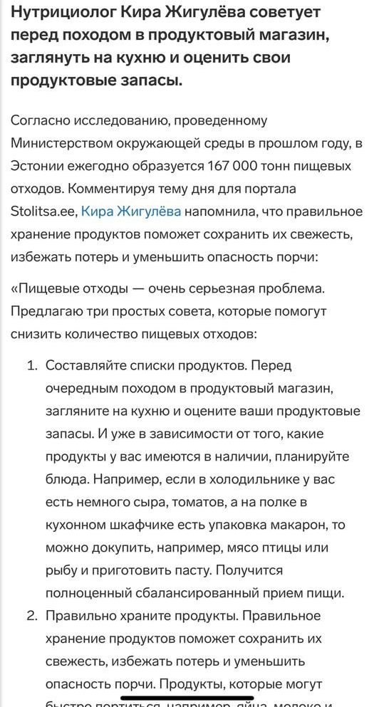 Жигулёва: пищевые отходы — очень серьезная проблема