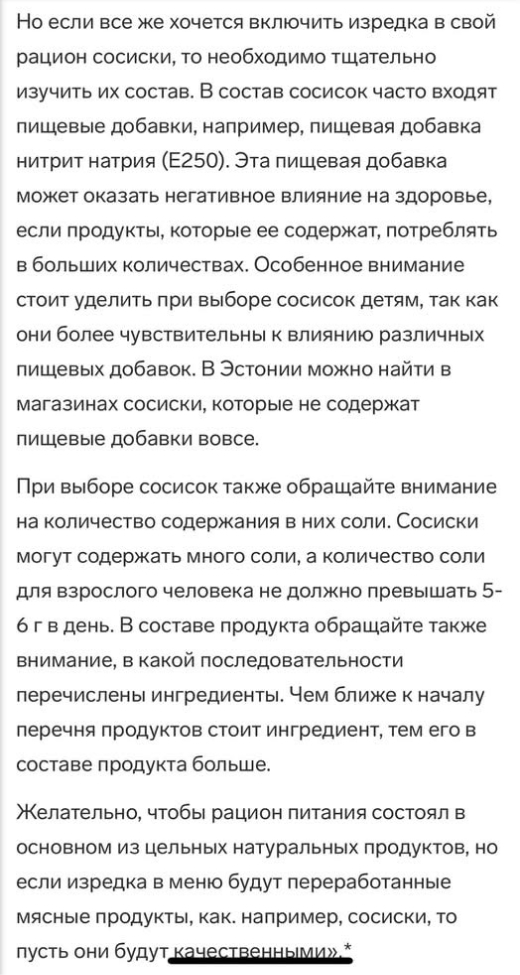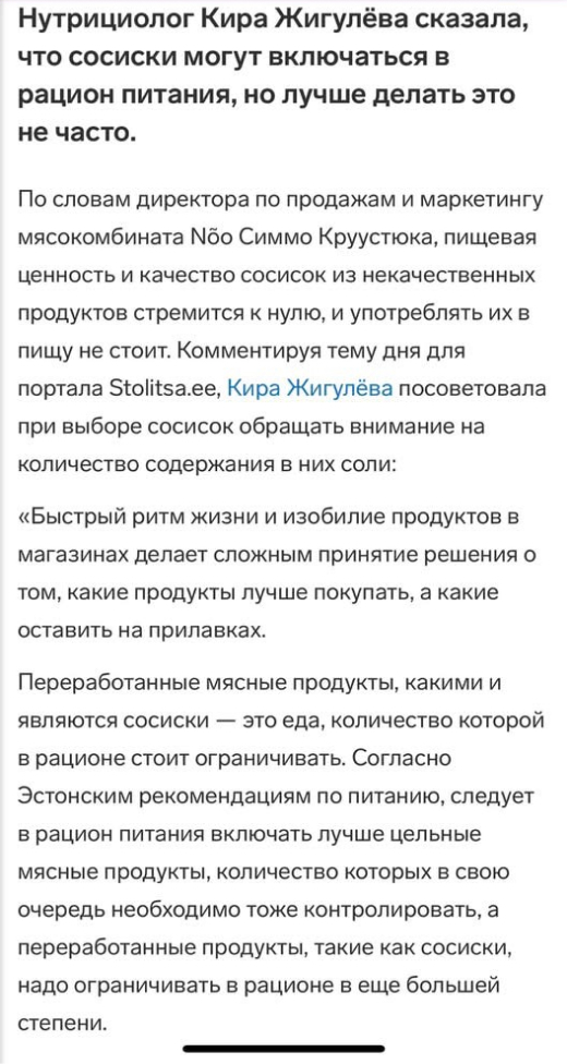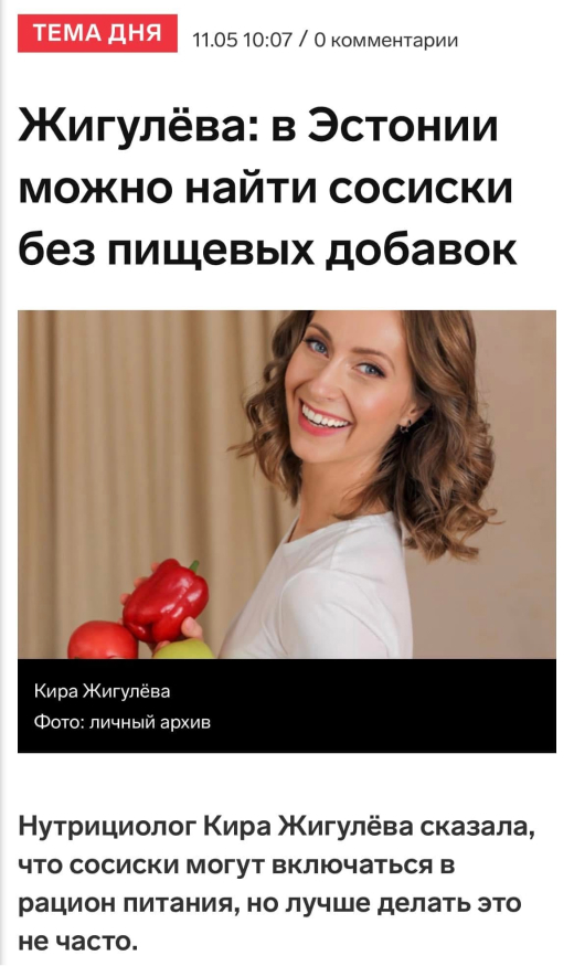 Жигулёва: в Эстонии можно найти сосиски без пищевых добавок